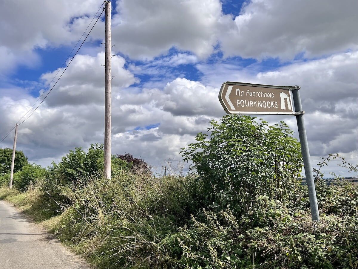 The area around Fourknocks is a rural countryside with wheat and barley fields. It’s an immersive view of the Irish countryside. There were blackberry vines, providing for a free snack, on the path to Fourknocks.