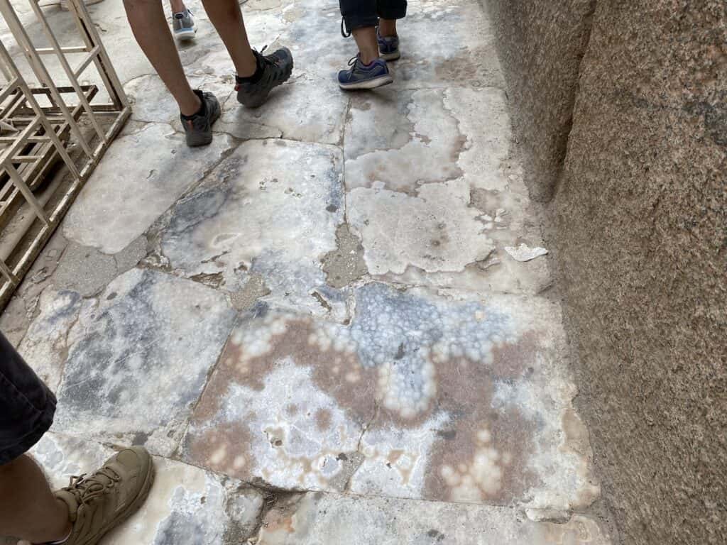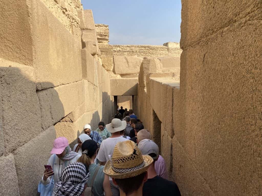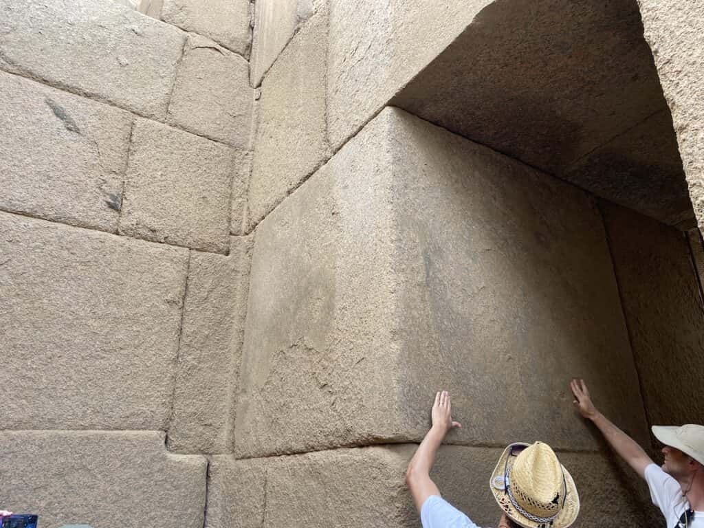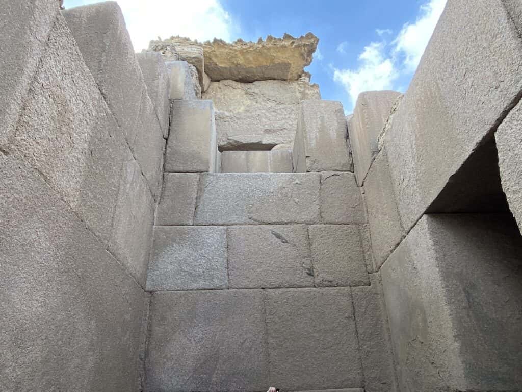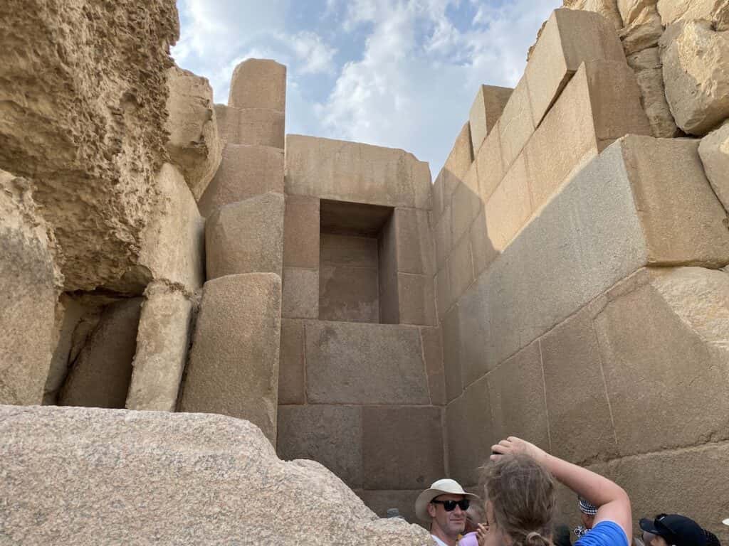 Located outside the middle pyramid at one end of the causeway toward the Sphinx. It’s made from huge polygonal granite blocks.